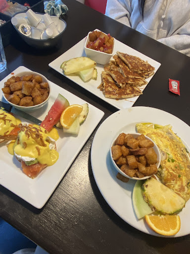 I went again with another friend and I got the brouillade pesto, the tomatoes that were in it was an amazing mediator (i guess you can say). My friend got the avocado-rico? one, and she said that the eggs could have used more seasoning. She absolutely loved the apple sauce, it was warm and perfectly made and recommends people to try it. The salad (while my dad loved it), my friend said it was a little hard to eat just because it didn’t exactly stab into the fork easily. She also recommends the benedict here (she comes here often) but we did not get it this time.