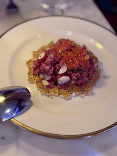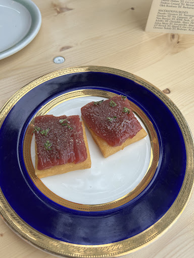 Read moreFirst thing first, they don’t have A/C… the place is boiling hot; bring your ice pack or a towel to cool you down. Then, house cocktail is a salty rosé slush, would not recommend. For the food, we took the beef carpaccio, which was allright, the lobster with courgettes, I mean it’s almost as if they didn’t cook the courgettes, came with crunchy almonds that had nothing to do with the rest of the plate. We then had the crozet pasta; honestly you can probably do better at home. At that point we were melting on our chair and debatting whether or not we should leave.They only have natural wine, the waitress was really bad to recommend something (and rude); we wanted a light and fresh white wine and ended up with a sparkling wine?! and really far from what we wanted. I usually don’t leave reviews, but honestly this place should be avoided. It is situated in the Little Italy and there is way better option in my opinion (P.S. it was really expensive for what we had… 3 plates and a bottle at the entry...