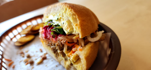 Thanks to the staff's recommendations, I got to try the lemongrass beef sandwich, a tofu and braised eggplant sandwich with a fresh mango smoothie with tapioca.
