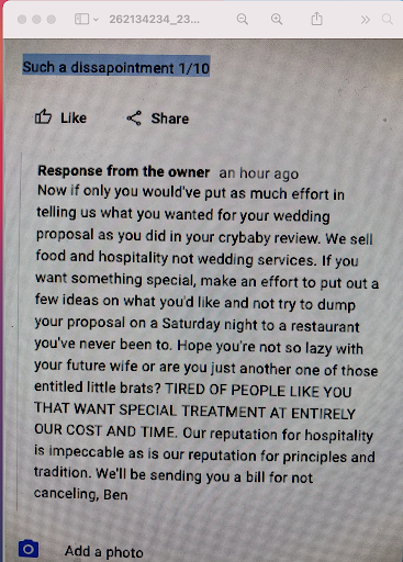 Most importantly - Your response is so immature and unprofessional and really just demonstrates the way you think of your customers. Using sentences like "Hope you're not so lazy with your future wife or are you just another one of those entitled little brats" really shines a good light on your attitude to working with people.