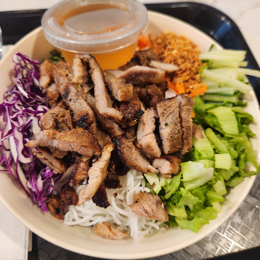 We had the pleasure of trying several other menu items, starting with their delicious chicken bowl, which was very satisfying. The fantastic spring rolls were served with a delightful sauce. We also enjoyed a refreshing papaya salad that was crisp and vibrant—definitely a must-try!
