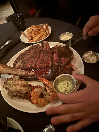 To be honest Iâm not normally someone who writes a negative review but tonightâs experience at this restaurant was THAT BAD that I just had to. We started off great because the host sat us down at a bigger round table (even tho we were just 2 people) but it all went downhill from there . We ordered the tomahawk steak for 2 which is 40oz of steak. The steak came out but no one brought out steak knives . I signaled to our waiter Theo that we needed steak knives and he nodded his head yes to acknowledge what I just said , but then proceeded to take the order for a 10 top that got sat right next to us . Him being sat a 10 top was not the issue, how he handled himself was . It took 10 minutes for the steak knives to come out, which was brought out by a gentleman named Yusuf (gustaf) . Even though we asked for the steak to be cooked medium, the steak came out medium rare . Unfortunately Theo never checked on us so we couldnât let him know what the issue was . Yusuf ,on the other hand , was the only one who took care of us, asked us if everything was ok and refilled our waters constantly. Heâs the only reason Iâm leaving 2 stars for service or why I even left a tip . Anyways, after we finished eating, we wanted to take the leftovers home . When Yusuf came over, we asked him if they could cook the steak a bit more before throwing it in a to go box. Yusuf told us that they ran out of to go boxes but that he would try his best to wrap up our food, which I appreciated . After this interaction, no one came up to us for about 40 minutes . When I finally was able to get Theoâs attention I signaled for the check which he didnât bring out himself . He had his female colleague bring it out . I had my card ready in hand and the female ( Iâm sorry I donât know her name ) dropped the check and left before I could run my card (she literally had the credit card machine in her hands and walked away?) . So we waited another 10 minutes but she never came back . By then we had sat there 50 minutes and we were angry . How do you manage to ignore a table for 50 minutes and not even bring out the leftovers we asked for ?? It doesnât take 50 minutes to heat up some steak and wrap it up in some foil ? We just wanted to leave at this point . So I went up to the bar where the female was and told her I was ready to pay . Once I paid I still couldnât leave because we still werenât give our leftovers. So we asked Yusuf for the leftovers and he brought them out 5 minutes later on a plate . He explained that the reason it took so long was because there was nothing he could find to wrap the leftovers in which is completely not his fault . (Itâs not his fault the restaurant ran out of to go containers). He did the best he could in that situation. Yusuf could tell that me and my boyfriend were still upset and told us to give him 2 minutes of our time . So we reluctantly waited and he brought out a piece of cake and apologized for how the evening went . I reassured him that he wasnât the issue . The experience wouldnât have been nearly as bad had Theo not been trying to pass us on to everyone else . After taking our order , Theo never came back to ask us if we wanted another drink or to explain the reason for his absence . I tried to be understanding , Theo just got sat a part of 10, maybe he had his hands a bit full . But all he had to do was check in with us and be like âhey Iâll be right with youâ or âI apologize for the waitâ . But he ignored us after taking our order . Didnât bring us our check, didnât wish us a goodnight. Nothing . I think it speaks volumes that we interacted more with Yusuf than our actual waiter Theo. I wonât be back . I Would definitely not recommend this place unless you like being ignored for 50 minutes ! (There were only 2 tables there aside from us , a two top and the ten top I mentioned previously plus a couple of people at the bar ) . Not busy enough for the service to...