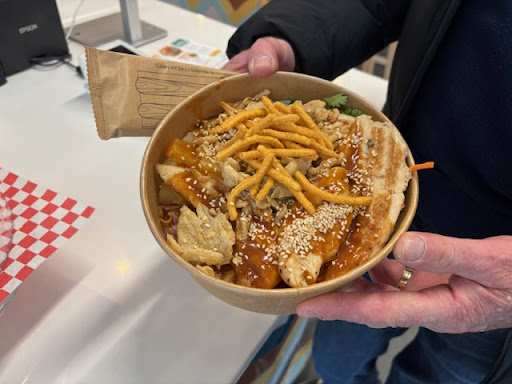 Now, letâs talk food. I built a custom Sky Bowl with half white, half brown rice and loaded it up with pineapple, peppers, tomatoes, onions, corn, bean sprouts, and their new vegan Thai chicken. I topped it all off with Japanese barbecue sauce and a sprinkle of Asian crispy crackers. The vegan chicken had an impressively meaty texture and soaked up every drop of that smoky-sweet sauce. Flavorful, satisfying, and lightâjust how I like my midday meals.