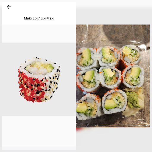 Read moreI place a pickup order on Uber Eat for the Maki Ebi. On the left you can see what they say is a Maki Ebi on their Uber Eat and on the right is what they give me. Where is the shrimp????? The main reason I order this is because of the shrimp and There is barely in it. It doesn't make sense!!!!!! For what I understand we cannot trust the pictures of their item on the Uber and probably the web site because it's the same picture. I do not expect to have the exact same thing BUT...