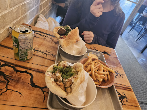 Wow. Really enjoyed my first experience at this place on a beautiful Saturday for a late lunch. It is a small place with a few tables, very clean where you order at the counter and you wait. If you are in a rush don't expect to get in and out in 5 or 10 minutes. Why you might ask; because they cook everything on the spot, everything is super fresh and you can feel and taste the difference. I can wait a few minutes more to eat quality and savory food. We ate kind of pita sandwiches with the best falafel from Montreal and probably Quebec, fries and soft drinks for under 50 $. The have a great selection of meat, vegetarian and vegan choices. As a bonus, the two employees working were nice, polite, respectful, professional and friendly. I was told they have been open since late 2021 and they would like more clients. It is a must, on Papineau street close to Mont- Royal. You will not be...