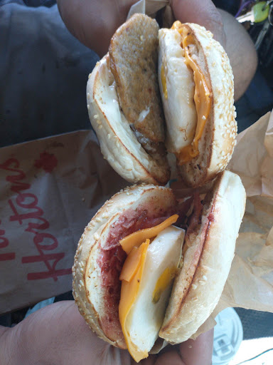 Read moreWe passed by and order a Sesame bagels Extra,extra toasted with butter, cream cheese and strawberry jam + a Bagel Tim Matin BLT sausage,egg extra bacon, extra mayo + 1 XL Coffee 3 Milk and 2 Sugar + 1 Medium Size Menth Tea. I repeat the order to make sure it was ok she cut me off 2 when i ask for the burned bage... Got there and try to repeat my order and she just cut me off and tell me it was 19$ i said no problem. I got my order and check it both bagel were wrong and my coffee had 2 cream in it.... I used to work at Tim a few years ago and it was never like this....they need to be more train because when i confront it to them Nicely she was implying that what i order i just looked at them (they were 3 looking at me...) I knew there was no point for me to talk to them and hold up a line.... I just left and leave this review hope it reach to ppl to either take a extra 5-10 mins to go to a other tims and maybe the manager to train...