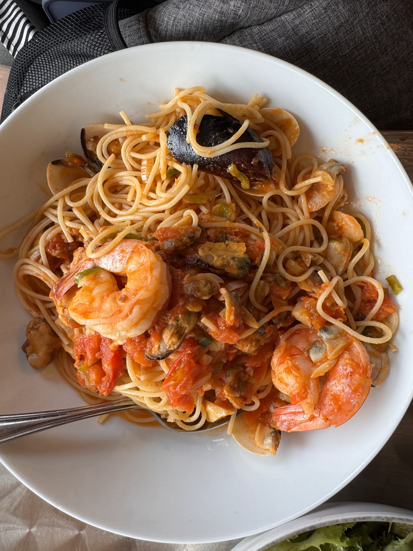 Read moreI'll start with the pros. Good food, polite and friendly staff, and the single person washrooms are clean with modern touchless soap and paper dispensers. There's live music but with a catch. Which brings me to my cons. The live music is incredibly loud. You're not gonna be able to have a casual conversation here without having to yell. But if you're a lively person and live for that, you may not mind. The service, albeit professional and courteous, was quite slow. But they were a full house when we went. And even at that, the food didn't seem to suffer. We'd be more than happy to come back and try something new on the menu. Prices for pasta are...