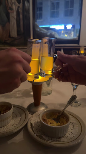 For our mains, we enjoyed a variety of dishesâfrom veal parmigiana, seafood linguine, and filet mignon with pasta, to lasagna, rigatoni, and the highlight for me: the homemade spinach and ricotta stuffed pasta (I believe it was called malfatti). Every single person at the table said it was the best Italian food theyâve ever had. We ended the night with a spread of decadent dessertsâtiramisu, crĂšme brĂ»lĂ©e, ice cream, and fried gnocchi with Nutella (which was out of this world). We sipped the best cappuccino Iâve ever tasted and were treated to a round of limoncello by the owner to finish the evening.