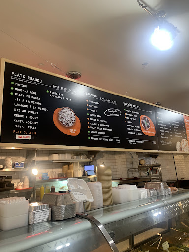 Read moreHave eaten, their food about 20 times over the last one year. The staff is the best thing at this place, they are welcoming smile, patient listening to the different combo replacements substitutes that I asked for, and always willing to add the extra sauce to my rice. The decor is homey, a few retro, vintage, knickknacks from around the world, just like my place. The food, hmm. The choices are plenty, the takeout prepared food ready to go home and eat is better than the fresh ,. Why so a Mediterranean cuisine is healthy because of its freshness and quality ingredients, freshness is a hit or miss in the prepared (plats chauds) food section. the goods: Mujadara ( lentil +rice ) is a winner, sn the chick pea stew, also the bassa fillet, with mild spices. My gripe: tabouli salad, doesn't have fresh parsley- definately ot made everyday/day of today: how is that possible 8 out of 10 times this is my experience. Summer sexy salad =cucumbers - at least a day old with fresh tomatoes - phew. Holy moly guacamole- avocado was fresh- the rest was recycled. the food is visually appealing, the choices are plenty, the decor/endroit is clean+pleasant, the staff is gracious and friendly, prices are avg plateau, ($$) the food............room for...
