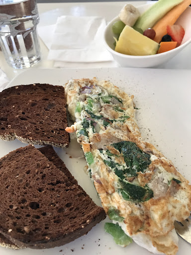 Had brunch here today. Ordered the healthy omelette. Food is good, standard fare for breakfast and lunch. Service was fast, I was seated right away without a reservation. It was a little busy, I waited a little over 5 min for the waiter to take my order. He never came back around to ask me if I was enjoying my meal or needed anything else. I didn’t see him doing that at the other tables either. I only saw him when I took my last bite and he miraculously appeared to collect my plate. When I said that would be all, he came back with the bill in the closed wallet and put it on my table. I hadn’t even looked at it yet, and a few seconds later a young woman came, opened the wallet and took out the bill and started running the payment. I found that a bit unprofessional. I never said I was ready to pay or leave. I also felt like I was being rushed to leave. But the food was good and presentable (see photo) so I gave 4 stars. One piece of advice. Even though they have a terrace, best to ask to be seated indoors during the winter. They have a huge heater that is too hot when you sit too close. Also, because of its proximity to their entrance, each time the door opens and closes (which is often) you will FREEZE.