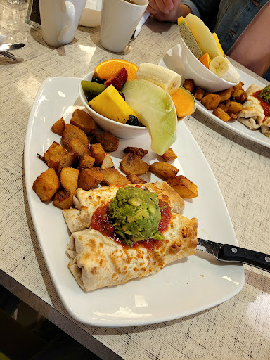 Previously, I enjoyed a tasty Mexican breakfast burrito, filled with scrambled eggs, cheese, brown beans, salsa and guacamole, and accompanied by their delicious home-fried potatoes and some fresh fruit. Very tasty. Very satisfying.