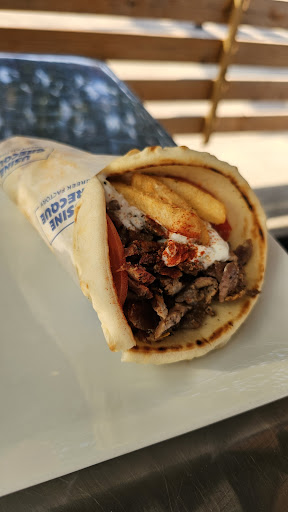 They got extra points for putting fries in the pita, the proper way in greece, however mine just had 3-4 fries. Being the cheaper ingredient, it'd be nice if there a few more. Makes it look richer without costing much. They also lost a point for putting the tzatziki on the meat. That usually causes a mess. Best way is like they do in Greece (pita, tzatziki on pita, tomatoes and onions, then meat, then fries. Pita was good but I'd suggest they oil it a bit when warming it up on the hot plate, if not it's dry.