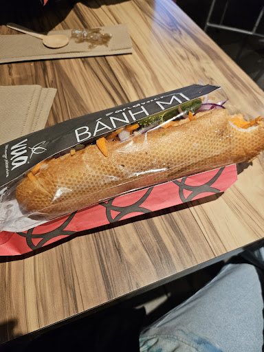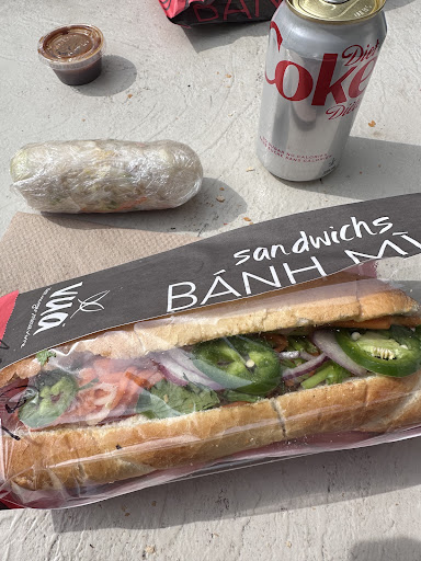 They have banh mi which they make fresh. Also lots of prepackaged meals like rice, noodles and sushi and drinks. The meals are discount after 9pm but not the drinks. Staff is absolutely cold and not friendly at all. Leave alone a smile but they're not even interested to answer any questions about the food at all. Seating and area outside was not cleaned in hours. Lots of food and packaging strewn on tables and chairs. Very stingy with napkins and cutlery. Literally one napkin!