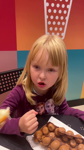 Read moreThe bubble waffle is above average 😎! I just tried the white peal as I went there at the closing hours and the brown peal was sold out. The white peal is chewy and I was surprised its good as the brown one. It's just less sweet, but it matched the tea I ordered. They also have space for dine in and the staff is very friendly. Her coworker already turned off the stove for making waffle, but she was willing to turn it on again and made a fresh warm one for my daughter. We will definitely go...