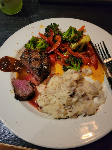 Read moreWe visited Moose Jaw this weekend. I did a lot of research as to which steakhouse would be best for our first meal as a newly engaged couple. After looking at the menu for Streets we decided to go there for some nice steaks and seafood. Menu on their website looked amazing. A bit pricey but I don't mind spending a bit extra on a nice meal. Our surprise when we arrived at Streets is the menu is no where close to what was on their website. No lobster tails, no scallops, no king crab. We considered leaving at that point but the ambiance seemed nice and we decided to give it a go. We both ordered the ribeye $43/each. I upgraded with the Shrimp in creole butter $5 extra. Tasted like frozen shrimp with Chili powder on them and over cooked. The Mushrooms in White garlic sauce $5 extra consisted of burnt onions and undercooked mushrooms with maybe a hint of salt on them. No where did I see a white garlic sauce. The steaks were about 1/4" thick and no where near the medium rare that we asked for. More like well done on both. I'm a big eater and never leave a piece of meat on my plate after a good steak. I barely choked down half the "steak". The "steak" itself had no seasoning on it. The stuffed potato skin was burnt so bad I could not cut through it with my steak knife. The highlight of our meal was the mashed potatoes my fiance got with her "steak" they were just alright. Other highlight of the night was the pizza we ordered from BP's after our meal at Streets to fill us up. Our server was good, very friendly, ambiance was nice but no where near worth the $180 bill we got at the end of the meal. Very disappointing. My advice to the owners of Streets. Go to Saskatoon and eat at Carvers. See what a $40-$50 ribeye looks and tastes like and seriously re think the pricing...