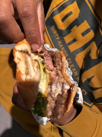 I like In & Out Burgers. Their burgers are the freshest. Some places they cut the onions and make the patties right in front of you. One day they'll bring that chain up...