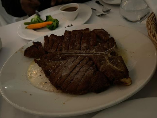 I had a Greek salad starter, medium-well NY strip loin, Tuscan style asparagus, chocolate cake and a café au lait. The food was phenomenal, everything was perfectly cooked and delicious. The table bread was a little on the stale side.