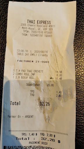 I had a really disappointing experience at this Thai Express (Centre Rockland). I specifically asked for battered chicken in my Pad Thai, but the staff member kept repeating âbutter chickenâ (just because Iâm Indian). I even wrote it down to make it clearer, but he still said they donât have it. This was frustrating because other Thai Express locations have understood this request before.
