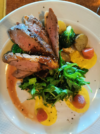 I'll start off by saying we didn't plan to go here. The place we intended to go didn't have a table for us so we went here randomly which turned out to be one of the best meals we had in Jasper. This place is really underrated, which I'll get into at the end. First and most importantly the food was fantastic. Each dish was prepared just right. We had the shrimp risotto, gnocchi parmigiana, duck and sockeye salmon. Each dish was awesome, with maybe the only the salmon being just good. Both risotto and gnocchi were prepared just right and tasty without being overbearing. The duck was perfectly medium with a nice glaze and tasted delicious. The salmon was perfectly cooked but but in comparison to the other dishes, I could only rate it as good. I fully expected the salmon wasn't going to be spectacular, but felt I needed to get off the over eating of red meat and carbs that I've had all vacation. For desert, despite being full, we shared a tiramisu and rhubarb panne cotta. Both were small but very good. Just enough to hit the spot.