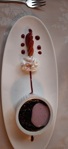 Delicious! Stayed at the Cabins for two nights and decided to dine in the restaurant on the Friday evening so we could relax after a long drive. We made reservations in advance, just in case. Our meals were devine! Sorry, there are no photos of the mains because we hungrily dove right in. My meal was elk steak, and they happily exchanged the sides to what was offered with the ribeye meal as I thought it would be better for my limited potato dinner. It blended so well with the elk that I was so happy I made the substitution. My friend enjoyed the bison bolognese and reported it was delicious as well. We decided to forego appetizers and had dessert instead. My dessert was the chocolate creme brule and was the perfect ending for my elk steak dinner. My friend had the chocolate tower cake, which was huge and equally delicious. Service was great - friendly and attentive without being bothersome. All in all, and excellent experience! Prices are a bit high and reflective of the quality fare - worth the price...