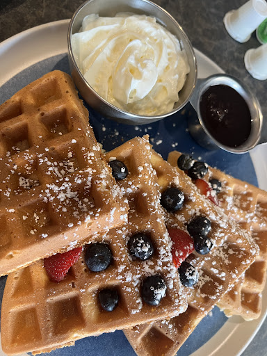 Today, also a Sunday as the first time there were several things wanting. After being seated we had to wait several minutes for our orders to be taken. When our drinks were brought out for the 3 of us, one of our party had a latte delivered and it was at least another 2 minutes until the others of us got our brewed coffee which was sitting on the counter a mere few meters away. When our coffee was delivered the accompanying cream, sugars and stir sticks arrived in our serverâs palms, not on a plate of any sort. Our food took a very long to arrive and in the meantime we had finished our coffee and had our empty mugs sitting on the table for over 5 minutes before we flagged down a different employee to assist us. When our food arrived it was only 2 plates ready out of our party of 3, the 3rd arriving a full 5 minutes later, with the accompanying meat being the wrong order. My âreal whipped creamâ was definitely nothing of the sort and it made me wonder if they had run out of it as they had run out of fresh fruit when we had tried to place our orders. The skillet was done well but the waffles came without a pat of butter. The French toast came without syrup. And our coffee cups sat empty yet again. The server thanked us for our patience and also apologized for the wait. I think I will have to try a third time here because the other reviews have been so glowing but the experience was...