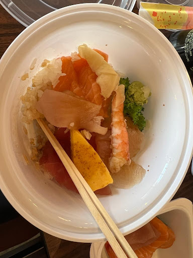 Long version - we saw a Japanese restaurant while driving around looking for a place to eat and we got excited. We were in a bit of a hurry because we were on the last day of our Alberta vacation. We ordered take-out in person for my daughter, my son and myself (for 3 people) but they told us it will take 20 mins so I asked my husband who was at A&W to come so we can be together while we waited for our food. We were the only customers so I thought it would be okay for my husband to eat his single A&W burger while waiting with us. Looking back at it now, I should have asked if it was okay. Our order came the same time my husband walked in. We decided to eat in because my little girl ordered ramen soup and it would be challenging to eat it in the car. My husband took two bites if his burger and the chef, came down and sternly and rudely told my husband not to eat his burger there which was understandable so he stopped. We understood the request and respected it. I was just shocked at how rude the chef was. He did not ask politely but demanded and sternly asked which startled me and my kids. It was as if we committed a terrible crime. My husband only took two bites of his burger at that time and wrapped it back in the paper bag. BUT they were also not happy we decided to eat in even if we bought the my food and my kids food there. We spent over a $100 dollars at their restaurant and they kept repeating it was take out. I kept asking if it was okay to eat in (the food we ordered from them and we are the only customers there) and they kept giving me murmurs and frowned faces. The chef even went down to cashier’s area which was directly at our side to watch us and ensure my husband was not eating. My husband had long gone packed his burger when he was told the first time. To make matters worse, they kept repeating take-out and I kept saying, is it ok to eat in since we bought the food there? WE WERE THE ONLY customers there (now I understand why the other surrounding restaurants were packed and they were empty). I asked for a spoon because my daughter ordered soup and they said they had no plastic spoons for the take out bag but we were dining in by now. They didn't bother to offer us proper metal spoons for my daughter's soup. I didn’t bother asking for a metal spoon because at this point they were clear they wanted us to leave. I’ve never been in such an unpleasant restaurant. Our lunch was completely ruined. My Chirashi Don was very meager - barely half of the take out bowl (I took 2 bites from the bowl on photo attached below) for $24 before taxes. This was at the end of our Jasper trip and this was not a good ending. This was not aligned with all the other wonderful experience we had at Jasper.