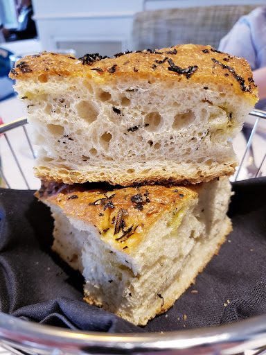 Our table ordered a collection of varied entrees, lamb chops (for me), a rissoto dish, scallops, and bison steak. During our wait we were served some olives and crostini with a spread, and focaccia bread. The crostinis were not fresh and tasted as if they had been sitting in a too cold refrigerator.