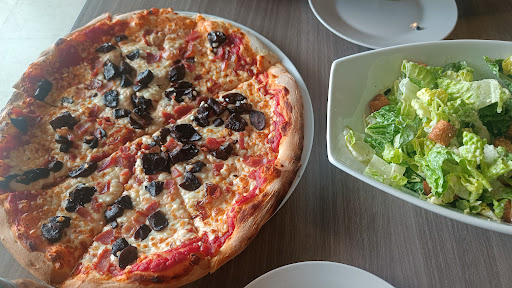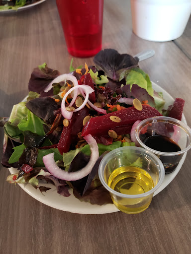 Beautiful atmosphere. Their pizzas are handmade and the food came out without too long a wait! The staff were friendly and accommodating =) The Thai chicken pizza my spouse ordered was supposed to have a "spicy sauce" but it was not spicy but otherwise good. There are no vegan options on the menu but the staff were helpful in accommodating by modifying a hummus wrap (omit feta and pesto with parmesan) and their chopped salad (the Greek godess dressing has half and half). After we were done ordering, my friend was going to get ice cream but the staff weren't around so we just went to The Dairy Bar (to be fair it was ~3:30...