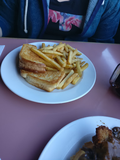 My partner was craving a grilled cheese, so a grilled cheese she got. For a very modest price, it hit all the right notes (looked to be kraft singles rather than cheddar, but it was still great) and it had a generous helping of fries.