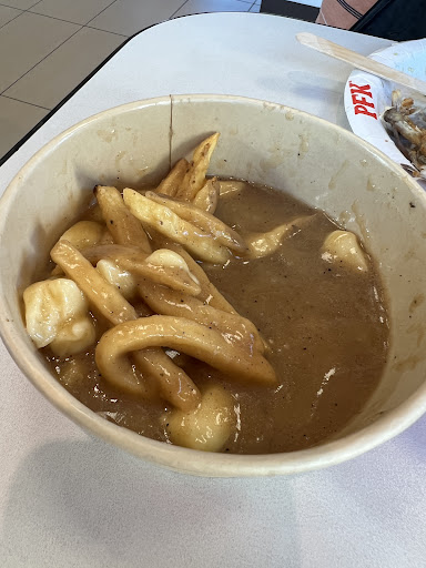 The green slop with mush glom is what they call coleslaw. And the $7 tray of cold dry leftover fries rehydrated with lukewarm gravy and topped with cold hard white substance, poutine, was food unsafe cool. When I returned to the counter to ask that they heat it up, they refused, claiming that it had been touched so wouldnāt be food safe. I asked for a fresh hot replacement. He refused, saying it was hot when he handed it to us. We had waited over 20 minutes for the chicken but they said theyād give us our coleslaw and fries while we waited for the chicken. My fellow diner, thinking weād be eating right away took his insulin and couldnāt really wait through a dispute over cold gravy slop. So we accepted the concession, a small container of warm brown goo to pour over the cold āpoutine.ā