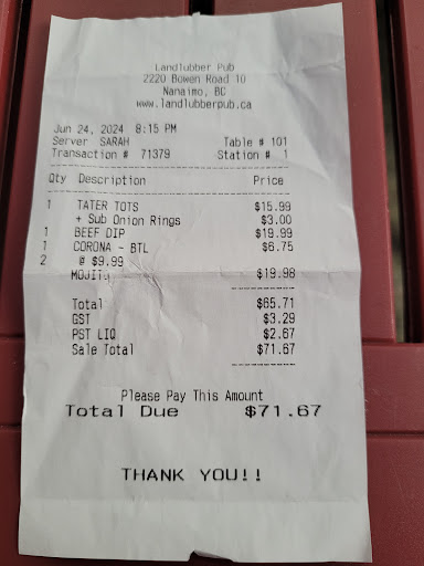 Read moreHad the most amazing tater tots some time ago, and would come back again! But, that is not what I'm here to talk about: let's talk about "the sign". It's come to light that some folks don't like the light humour that Andrew, the owner, wanted to convey while looking to hire new staff. What some people decided to do was berate him based in wild assumptions about how his alleged underpaying of his staff; you could not be more wrong, naive internet police. Based on sources which I cannot name, the staff who work at The Landlubber make well over the minimum wage AND receive extended benefits. So, the next time you decide to ride the internet waves of hate try to see it from the point of view of the person who wrote "the sign" before you decide to call them names you'd never say in person...