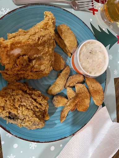 Ā Ā Ā Read moreThis was by far the strangest fried chicken restaurant experience I've had in my life. We got our order, a 9 piece meal with sides of taters, mac and cheese salad (I'll get to that later), fried pickles, and chicken twists. The fried pickles were tasty but my god are they salty, saltier that you'd expect even for a pickle-based Appy. The twister was ok, mostly tortilla. The mac and cheese salad is just a mac salad, which is more than a little confusing when you order online. It was ok, very oddly flavoured but pleasant enough. The taters and chicken though. For being the namesake of the restaurant, I've NEVER had more flavourless chicken or taters. Ever. And I'm from the southern USA, I've had a lot of fried chicken. It was perfectly moist and well made bit not a single ounce of flavour. Even the spicy chicken was devoid of taste, aside from what was clearly just a load of cayenne pepper. Very disappointing. It was still edible, which rescues it from a one star rating, but I'm not...