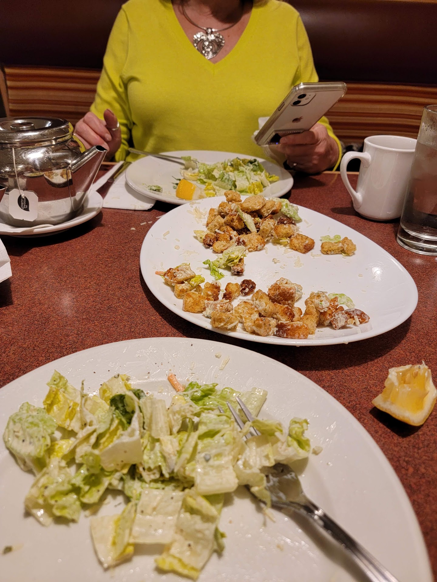 Ā Ā Ā Read moreMy sister and I stopped in Nanaimo to have dinner on our way through. This place was visible from the road and looked busy. so we stopped. The funky lady who took our order was lovely and we had a conversation about how everyone.was on Keto these days. She had a lovely young man shadowing her, he will make a good server. The hostess was beautiful and friendly. We ordered a ceaser salad to share to go with our individual meals and this is what we got for 14.00. My sister's cordon blue was cool in the center. I had a seafood plate. I didn't want fries so ordered extra veg. And got a few more carrots with the odd sliver of Bok Choy and zucchini thinly sliced scattered in. Our salad was so jam packed with croutons and barely any lettuce?! We loved the atmosphere. All ages of clientele.all demographics. Maybe we will just stop for...