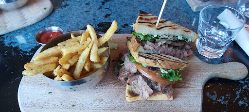 Read moreWe were a group of four. Ordered the steak sandwich, chicken wings and falafel wrap... all with fries. Let me start by saying all of us agreed this was the best fries ever... really! The falafel wrap was very good... it is very chilli though, for us at least. As far as the steak sandwich, the presentation was great... one of is liked it ok. For me, the meat was cold for what's supposed to be a hot sandwich. That was a big turn off for me as I expect steak to be hot and only like it that way. The server was kind enough to bring a new one and she brought it with another side of fries (so that fries was a very well received bonus). The steak was warm (still not hot though) so it was ok for me... I thought it was medium rare (they never asked how I like it cooked as I would've preferred medium well). Finally, they charged a dollar more for the steak sandwich than what's advertised in the menu. I only realized after we left so didn't inquire. Although the steak sandwich was a disappointment for me, I felt they were very nice trying to fix it and made 30% tip as a thank you and for the extra side of fries. I will definitely come back for the fries... as far as what to order with it, I'll probably ask for the falafel without the chilli, maybe chicken wings or try something else... definitely not the steak sandwich. And I can't think of an explanation as to why I was charged extra for it... although...