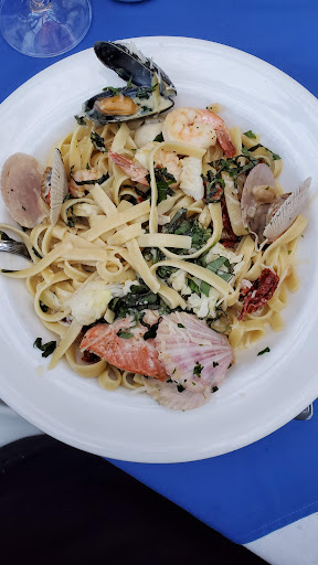 Tried this out for the first time. The staff was very friendly and professional. They made you feel like you were dining at a luxurious upscale restaurant. We had a Vodka cran and 7 but it wasn't quite right. Didn't have any bubbles like you would expect from the 7 up and just something wasn't right. The beer my husband ordered was out of stock so the waiter suggested another and it was ok but my husband didn't even finish it. The calamari was kind of bland and almost seemed like it was undercooked. The free bread was to die for. So delicious. The Lettuce Wraps were sparce with the filling but tasted delicious. We had the seafood Fettuccine and we found the pasta was AL dente which I am not really a fan of personally but lots like it that way. I never mind eating it on occasion that way but coupled with the watered down sauce I didn't even finish 1/3 of it. My husband ate some and he didn't even finish it. We basically ate the seafood out of it with a couple bites of the Fettuccine. The fish and chips were ok but nothing special. Our favorite part of the entire meal was the fries and free bread. After a $100 bill .....we won't eat there again ourselves. I would also suggest the restaurant maybe clean the roof of the outdoor space. Hard to be upscale when people look up and see all that...