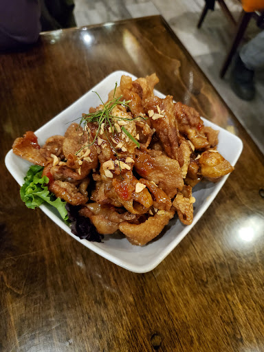 I've wanted to try this place for a while and squeezed in an appetizer and drinks tonight. Cozy place and an interesting decor, with only 10 tables or so. Roti curry and fried chicken skins - the sauces are both amazing, though the chicken skins could have used a bit more sauce. Melt in your mouth, crispy. The roti - a kind of fried flatbread - was flaky and paired well with the flavourful curry sauce. Also some fancy mocktail options on the menu. I went with the lychee lemonade. Sweet and refreshing, with real lychee fruit included. I should have stirred it a bit more because the drink ended with a lot of syrup (not that my sweet tooth minded). I plan to come back for a full date night experience - the entrées eing served around us all...