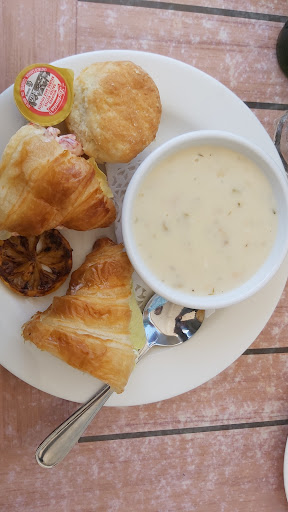 Tasty food - had the lobster club and it was very filling and well done - lots of lobster in it along with bacon, lettuce, and tomato. You also get choice of white or whole wheat bread. For sides you can have regular or sweet potato fries (no extra charge - a nice change!). My wife had the pulled pork sandwich and reported it was also really good. Portion sizes are great, but prices are on higher end (lobster club was $17.49) - this is to be expected though for their remote location!