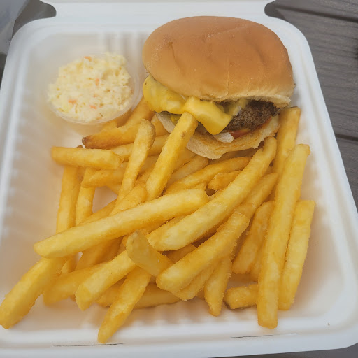 This is a typical take-out, order at one window pick up at the next. There are a few picnic tables and a small swing set for younger children. The food is amazing. They serve all the typical seafood dishes as well as great hamburgers and other dishes. The portions are what I would call normal. Most places pile on the food and fries and I end up leaving half of it on the plate. I consider that a waste. While the meals were expensive we didnt mind paying the price for the quality of the food. The take-out is a little out of the way but definitely worth the trip. We pass by that area a few times a year and the consensus of the group is always to eat there versus a sit in restaurant. We always look forward to our next meal there and would recommend this take-out...