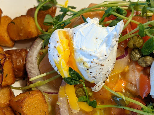 Food : The eggs in the brioche and bagel sandwiches should default to be cooked over hard like they do at the other locations. My girlfriend ordered a pur morning bagel sandwich and the egg was runny which is suboptimal for such a sandwich to say the least. I myself ordered Norwegian egg benedicts. I asked for the eggs to be poached medium and I received overcooked hard eggs. I think the kitchen has a hard time to manage the cooking of the eggs when there is a lot of orders being processed at the same time. This never happened at the other locations. The last issue was the quality of the oranges. Weirdly enough, one of our orange quarter had a yellow and green peel and the other had what looked like a dirty black spot about the size of a finger tip. It could be a supplier issue or maybe we were unlucky and had a bad batch.