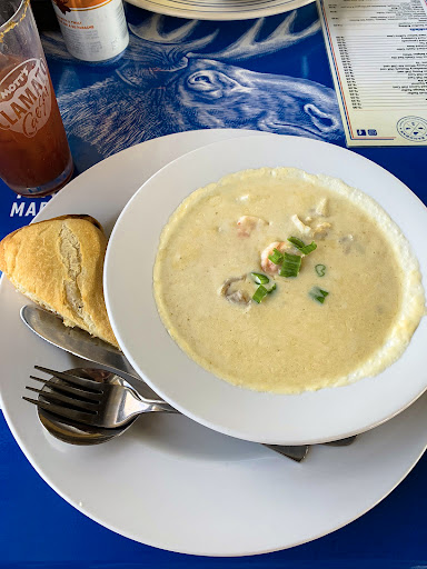 Read moreLovely wife Pat and I ate here for the first time this past hot July day. Both of us enjoyed the visuals within and around this idealy situated restaurant. Within moments we were offered seating to which we asked for a table outside but in the shade. The attendant obliged the two of us by letting us know she'd have to go out and clear a table recently vacated. Moments later we were seated in an ideal location, right next to the lighthouse but with visuals to the wharf, bay and the street to/from the adjacent parking lot. Always seemed to be something to watch. We thought it odd that a trio of elder gentlemen went swimming right in an area where a sign warns of boat traffic (see attached photos). Happily all three made it back to the warf safely. Guessing this is something all good water voyagers watch out for. Within moments of being seated, our waitress came and took our order for drinks. Shortly after returning with said drinks she kindly took our orders. In no rush we did not mind the wait for our food, especially realizing this is not a fast food outlet where items simply sit under a heating lamp. Both of us enjoyed our meal. Pat had the Shrimp Pesto Linguine while I had the Grilled Chicken Club. Waitress did come back to check on us and neither of us had any complaints. We both look forward to returning...