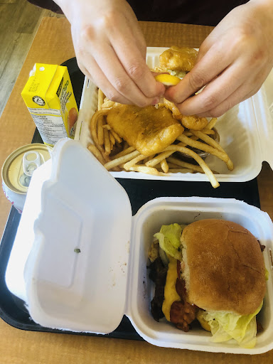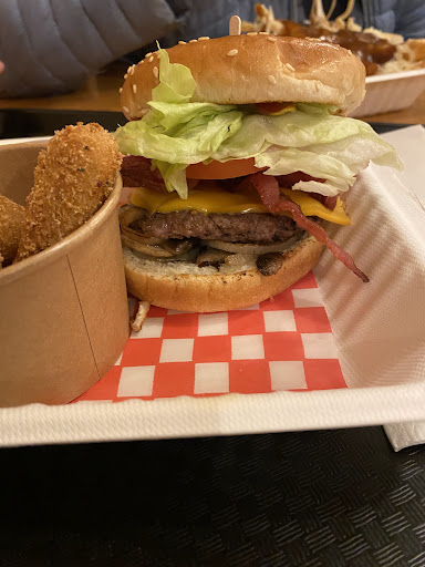 This was one of the smallist resturants I have ever been in but let me tell you, there was nothing small about the food. My wife and I both orderded their trio which included Burger, fries and drink. The burder was made with a home made patty not a prepressed patty, it included friend onions and mushroom, nice and juicy like I loke them. Lots of fries with the meal as well. While they only have a few seats it is more than worh a stop, your stomach will thank you. The lady working there was...