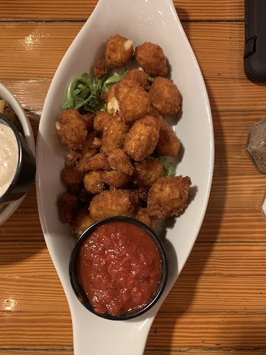 Went for dinner for the first time on a Tuesday evening. Not busy, quiet inside, about 3-4 other tables were occupied. Great service. Good selection of beer and cocktails. Price per cocktail is $11, a bit steep in my opinion. Kids got burgers and fries, good size portion for $10 each. Fries needed some salt but there was salt and pepper on the table. The burger patty had a strong garlic taste (not a bad thing) and could have also used some salt, it was homemade and juicy. The kids dessert which was vanilla ice cream and a choice of chocolate, caramel or raspberry sauce was also a large portion. We also ordered, the fried cheese curds, jalapeño infused honey and bacon fries ($7 for a small bowl), pretzel with beer cheese dip and the fish tacos. It was taco Tuesday, the tacos were $1.75 off ($15) and we got a free refill of a glass of beer! The cheese curds and pretzel with beer cheese dip ($15, additional pretzel $5.50, additional beer cheese dip $2.50) were our favourites. The marinara sauce that came with the cheese curds was cold and was definitely from a can, not a fan. We could not taste the jalapeño in the honey and the fish tacos were bland, really lacked flavour. We wanted to like it but it needs to improvement. Overall, it was a good experience, the food came out hot and fresh but I think thereâs room for improvement with recipes and they need to reevaluate the cost of certain dishes. They offer gluten free (including beer) and vegetarian options as well. Total cost...