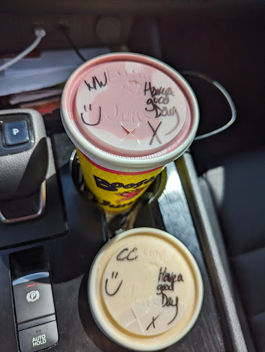Read moreVisited today in the afternoon, young lad by himself during a busy period, there must have been around 10 people walk in during the time I was there. Based on previous reviews I just read, this employee always takes the time to appreciate customers during busy periods (we also got the writing on the cup and that was a great touch) and it was no different for us. The drinks were great and considering the back up, came to us pretty quickly. I just feel bad, there shouldn't be a single employee working, clearly (again, based on previous reviews) it's a trend that it picks up around this time, and the staff should have more support...