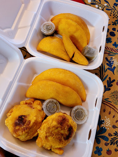 Finally got to Cafe Andes and oh mylanta, so good! We tried 3 flavours of the empanadas: flank steak, chicken, and Colombian (potato and beef). They were all delicious but the flank was the winner for us. Crisp just slightly sweet corn crust stuffed just right. And that magic green sauce...not entirely sure what it's called, but just the perfect balance of bright and fresh without being too spicy. Next up was the Colombian Style Stuffed Potatoes (Papas Rellenas Colombianas). Almost what I'd imagine a portable ball of Columbian shepherd's pie. The pototo was rich and creamy with lovely seasoned ground beef, rice and egg in the center. And last but not least Pabellon Arepa -Corn flour Arepa Stuffed with Shredded Flank Steak, Black Beans, Fried Plantain, and Mozarella Cheese. That sweet plantain in there. Mmmmmmm. It was definitely 2 meals in one. Can't wait to go back and try more new things!