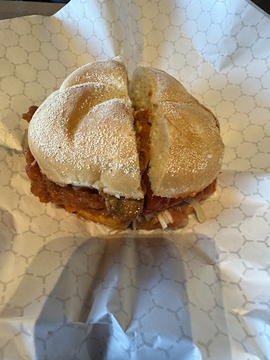 Yes Let us be frank... very frank indeed. This is an "Italian" style sandwich and pizza shop on Davis Drive In Newmarket right near a McDonalds and Wendys/Tim Hortons. It was the crack of noon and they advertised on a billboard as the best veal sandwich in town. A guy outside said all the sandwiches are good but he just was at Mr Sub and he didn't eat veal out of principles. So I ordered the chicken sandwich which comes in at $9.95 and any toppings are extra. The owner or worker told me that fully loaded this was around $16. That's a bit steep if you ask me so I stuck to the chicken sandwich with no additional toppings. He had ONE piece of chicken ready in the warmer tray and proceeded to dunk it in sauce and put it on the bun. This is one tiny piece of breaded chicken. I am used to California Sandwiches and by comparison this is almost the same price and maybe half the chicken as California Sandwiches. You are basically getting an $8.50 tiny piece of chicken and a $1 bun with a smidge of sauce. This is perhaps the biggest rip off in the sandwich venues available on Davis Drive or in fact anywhere. Absolutely a terrible value and a fairly run of the mill sandwich. It is basically a giant bun with a touch of sauce and small piece of chicken. Clearly I am not the only one unimpressed since this was 12 noon and there was only one other person in the store. Everywhere else in the mall was jammed. I would highly suggest people avoid this place since its as easy as falling off a rock to find a better product and value. Popeyes even with the raised prices is cheaper and bigger and better. Even McDonalds with the new Chicken Big Mac at around $7 you are getting two pieces of chicken. Just look at the photo. You go to California and the chicken is falling out of the bun. Even Pizza Nova at just over $10 includes hot or sweet peppers and its not all bun. Let's Be Frank.. if I wanted a bun sandwich I could just go home. In no way worth the money