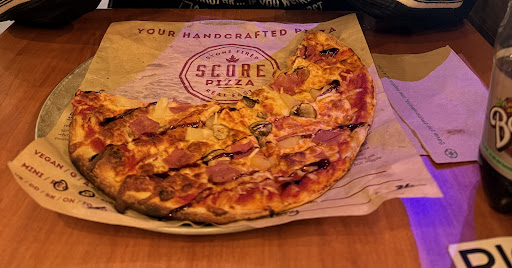 Read moreAs Italian Canadians having eaten our way through Italy and having our own pizza making skills, it must be said that Score pizza would be at the top of our list of the perfect pizza. The trick to a great pizza is thin crust and fresh ingredients. This is what you can expect at Score pizza. The crust is thin, as it should be and the red sauce, which is what we chose, is spot on. As always, we only put 3 toppings. Those that overload with toppings may not appreciate the thin crust and all I have to say to that is less is more! And those that are accustomed to the Western version of pizza and food may have different thoughts and that’s ok. We visited on Saturday April 12th around noon. They were fairly busy hosting a kids birthday party in addition to other patrons. The service as always was great! We watched the staff as they prepared the pizzas and it was like a well oiled machine. The staff were very pleasant and at one point, a gentleman in a red shirt whom I think was the manager, and also working behind the counter, praised the staff for their teamwork. Even if he wasn’t the manager, the fact that he acknowledged their efforts was a nice gesture. He actually went to serve the pizzas to the kids party and stopped at our table to ask how we were enjoying our meal. Clearly he is someone that takes pride in his job and represents Score pizza very well. We don’t venture out to malls much anymore but when we do my husband wants to go to Newmarket because he gets to have a Score pizza! Tutti a tavola...