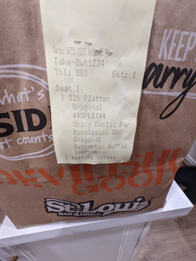 Read moreI don’t know where to start. This was one of the worst experiences I’ve had at a restaurant. I’ve been to many St. Louis locations. Always love their wings and burgers and the dill dip. I saw an ad for the all-you-can-eat ribs so I told some friends and decided to give it a shot at this location. Let me start by saying that the restaurant was empty when we got there at 6 pm. It was just our table and another table. We ordered the first round of ribs and it took almost an hour for us to get it on our table. When we talked to the server, she said it was because they received a large number of online orders. That’s fine, we understood. She told is that the next orders would be coming in a lot quicker. That didn’t happen. Every order took so long to arrive. Never seen this before. When we asked for water we got it but were never offered a refill. By the time we got our third order of ribs, there wasn’t enough sauce on it and the centre of it was cold. Yes, cold. Not even room temperature. It was very clear that they either didn’t care or they were understaffed. Even their fries, which we always love, came EXTREMELY salty. Really really salty. When we told them, they took the fries and brought us a much smaller portion with no salt at all. Not one grain of salt. We just ate it because we were tired of complaining to our server. Our server was nice and patient though. Our party really suspect that they didn’t have enough staff in the kitchen. We don’t know what the real problem is but it was just a horrible experience all together. If you view my ratings on other restaurants, you’ll see that I almost always give a 5 star review to any restaurant I visit. I’m very fair and not the kind of picky eater or a difficult customer. But this time, I had to give this restaurant the rating that I think...