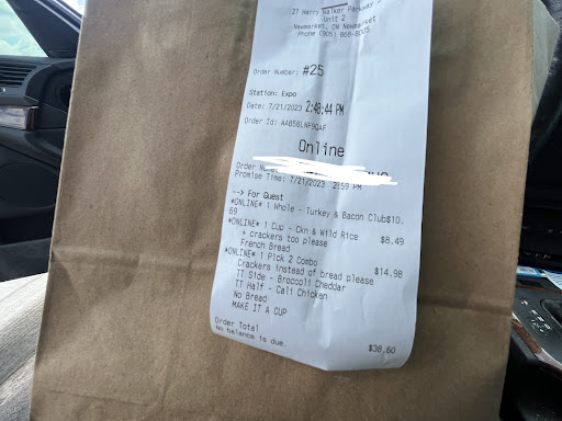 $43 for two 12oz soups and two sandwiches only half size.. one of the turkey bacon clubs only had 1 slice of turkey on it, two pieces of bacon and I asked for no tomato so it was almost all bread. The other one I ordered was a bit better but still not how they advertise it.. it atleast had two slices of turkey, two pieces of bacon and one slice of tomato. These half sandwiches were $11 each and barley had anything on them. I asked for a loaded potato soup as they advertise online, didn't have it, so I asked for a brocolli cheddar as they advertise in store on the menu, didn't have that either but didn't tell me until after I paid. I asked them if they could substitue a mac and cheese cause I wasn't intereted in any of the other soups but they wouldn't and since I had to come back up to fix my order infront of a line up of people waiting I didn't want to ask for a refund and ended up getting a soup I don't eat. Doesn't really seem like they are fully ready for customers. I heard them tell one another person in line they didn't have something else.. This place has the potential of being really good, the people working are nice but it's way over priced and they don't have everything...
