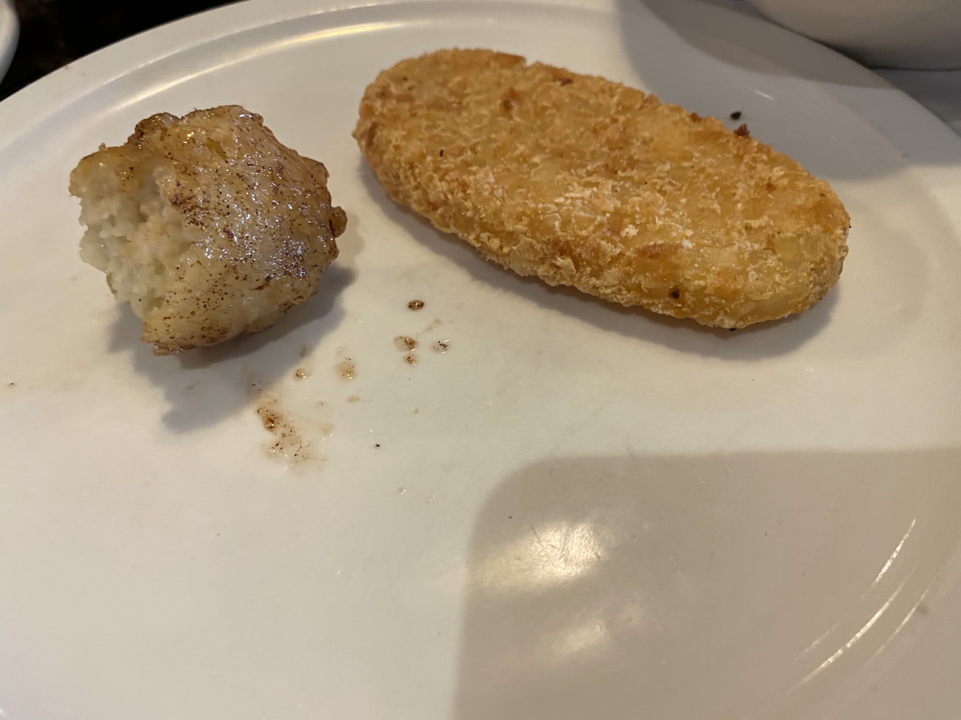 Food waste: Our food was delivered in about 3-4 minutes after seating. Fast service, and our server brought us everything we could imagine AND MORE. But the “and more” part is where room for opportunity appears. Although we’re given an abundance of food - from hash browns, sausages, bacon, pancakes, waffles, AND more - so much of it is wasted because we’re given more than we expected. With almost 50% of our food going to the garbage that adds up to increased food waste costs that can be avoided.