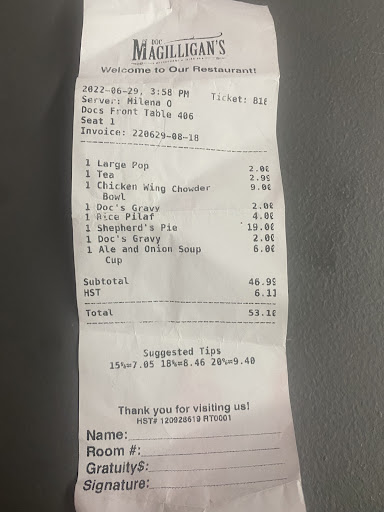 The female bartender who served us by the name of Milena was extremely snappy . She had long dark hair .I went for lunch with my mother and we were the only table . After our lunch we discussed and we both felt the server / bartender was snappy towards us for the same incidents during our lunch. We were polite the entire visit .She yelled at my mom asking her if she wanted a refill of water for her tea bc my mom did not hear the server the first time since she was bent down picking something up while asking the initial question . My mom ordered a soup but did not specify which one but I guess the server over heard us discussing so when my mom ordered a soup I said she wants the Buffalo chicken and she snappily replied “ I got that “ in a negative tone . We also put the salt and pepper and drink menu on the table out of the way so we had more room for our plates and she got frustrated at this and rearranged it while taking our order . She also pretended not to hear me when I asked for a gravy and I know she heard me so when I finally ordered it as she came back to say anything else she said “ you mean another gravy right “ in a rude tone as if to correct me since we already had 1 gravy which was at the table already . This was just a few of the things that happened during our visit . When I asked for a bag with the to go food she responded “okay” in the rudest like what’s wrong with you tone . At the end when the bill came out it was like she was split personality and she was being so polite . She also kept us waiting at the end for the bill and I feel this was intentional bc you can tell by our body language and table we were ready to go - mind you we were the only table and even my mom comment she was just standing around for so long but gave us our to go box much much earlier . I don’t know what she had against us maybe bc we are not male and she’s about the flirting like thinking more tips - I don’t know ? I still tipped bc it’s service but no where near my usual tip . This lunch throw off the rest of our day which was my birthday too . Very disappointed. The food was good at least although I felt the inside of my shepherd pie could have been cooked more I was not about to mention it to her bc I had little trust in her due to the attitude. I wish I read the previous reviews first bc several previous customers have complained about unfriendly service as well . At what point will the owner stop sending a generic response “we will do better- hope you come again “ response and recognize that customer service is important and especially in Niagara . Your losing customers and money and ratings .clearly it’s been months since the previous reviews too and nothing...